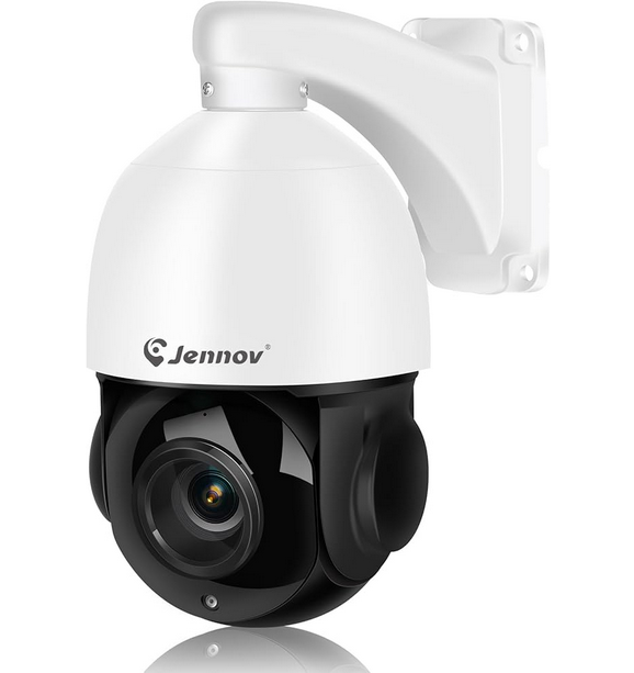 Jennov Cámara IP POE PTZ 4K 8MP para exteriores con zoom óptico de inclinación panorámica 20X y detección humana, cámara de seguridad domo de velocidad con visión nocturna IR de 320 pies, seguimiento automático, solo funciona con POE NVR